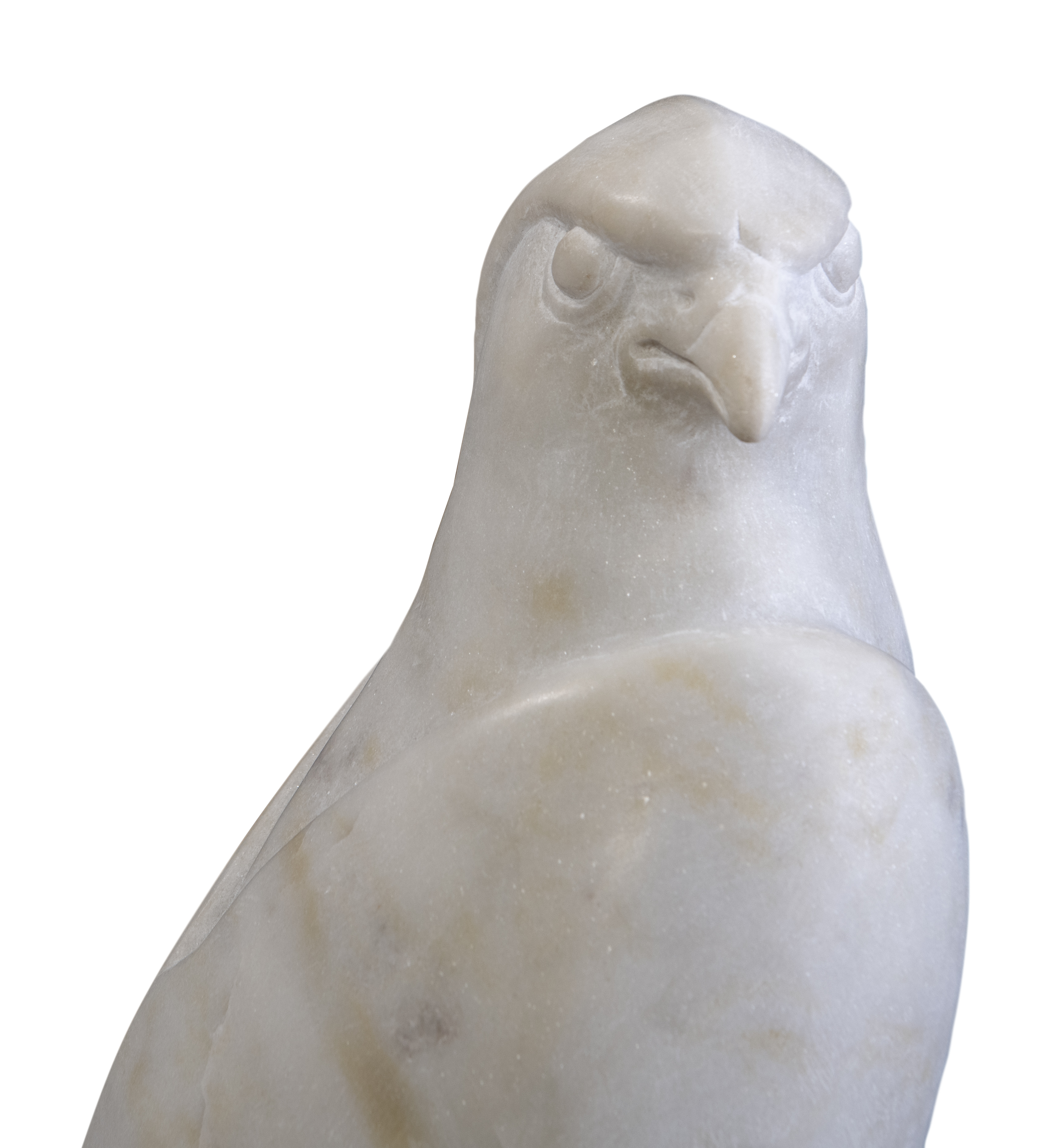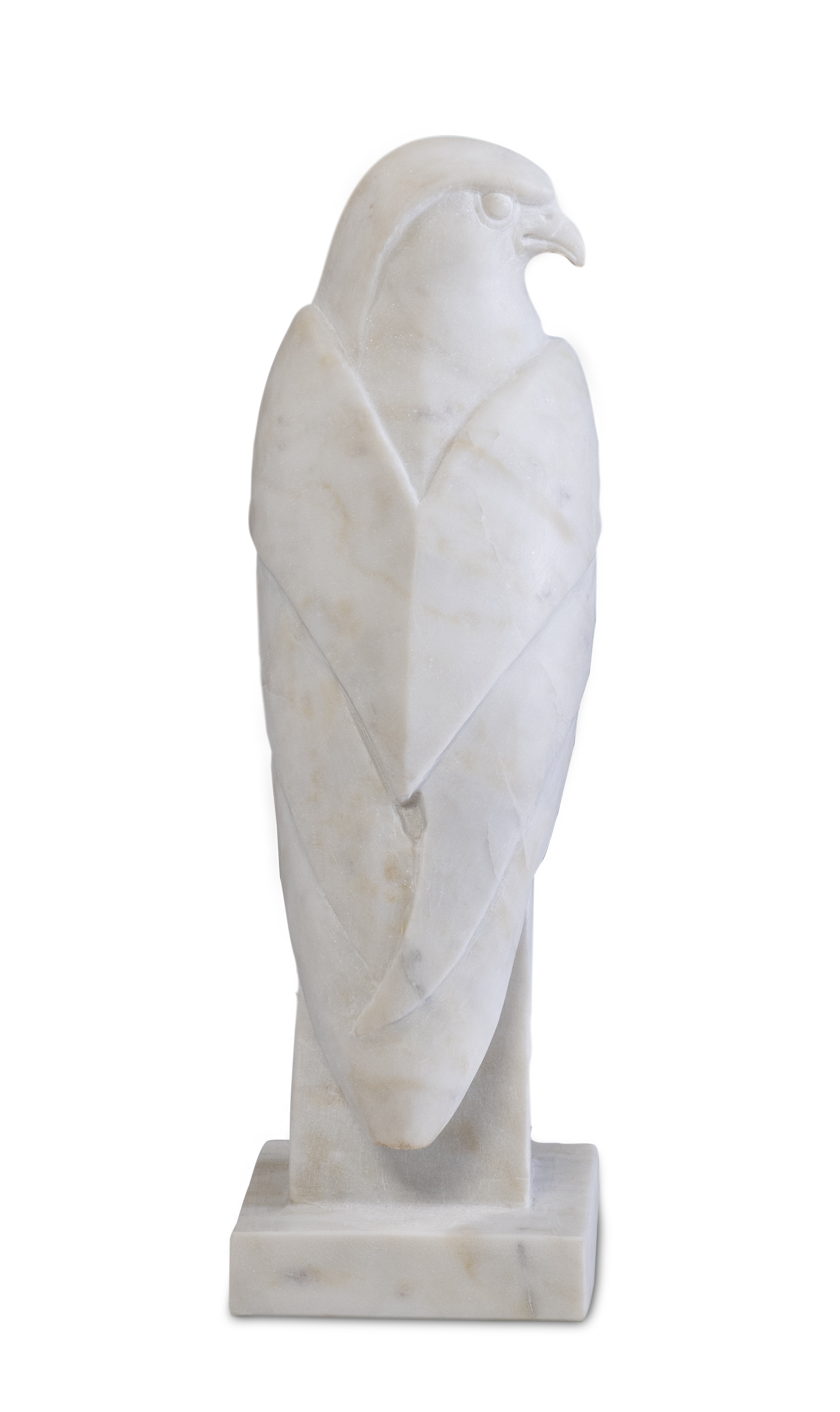 Carved from luminous white marble, this stylized falcon stands as an emblem of vision and mastery. With its sweeping geometric planes and poised silhouette, the piece bridges the grace of nature with the precision of classic design. The falcon’s gaze—focused and resolute—evokes an age when art and architecture celebrated power through restraint. Whether displayed singly or in pairs, it commands attention with a sense of timeless dignity.