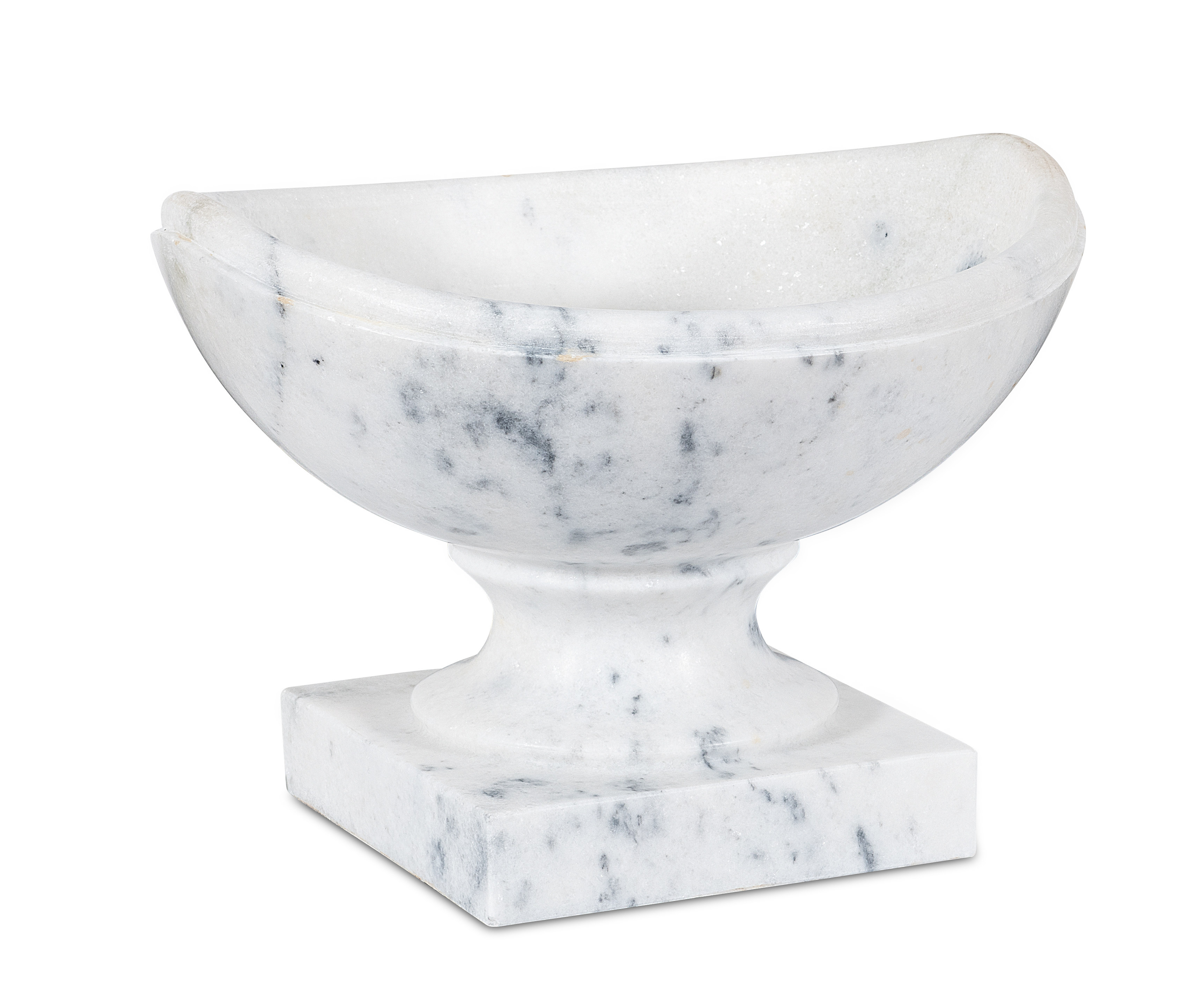 Graceful and architectural, the crescent vase reinterprets an ancient form with sculptural balance. Its sweeping, upturned edges suggest the movement of a rising moon, while the pedestal base anchors the silhouette in timeless symmetry. Cast in the warm, golden stone from Rajasthan, India, it lends quiet drama to consoles, mantels, or garden niches—a vessel that celebrates both simplicity and sculptural poise.