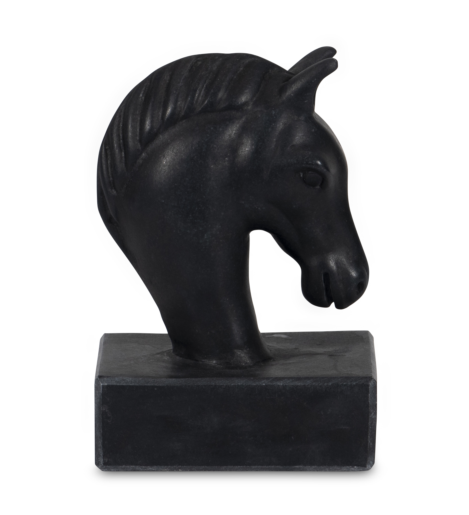 Majestic and timeless, this sculpted horse recalls the noble fragments of ancient equestrian monuments. Hand-carved from marble, its powerful lines and refined contours speak to both strength and grace. Resting upon a fluted plinth, the form captures the poise of a classical steed immortalized in stone. A polished Nero Marquina marble accent adds contrast and depth, evoking the dialogue between light and shadow found in the great statuary of antiquity.