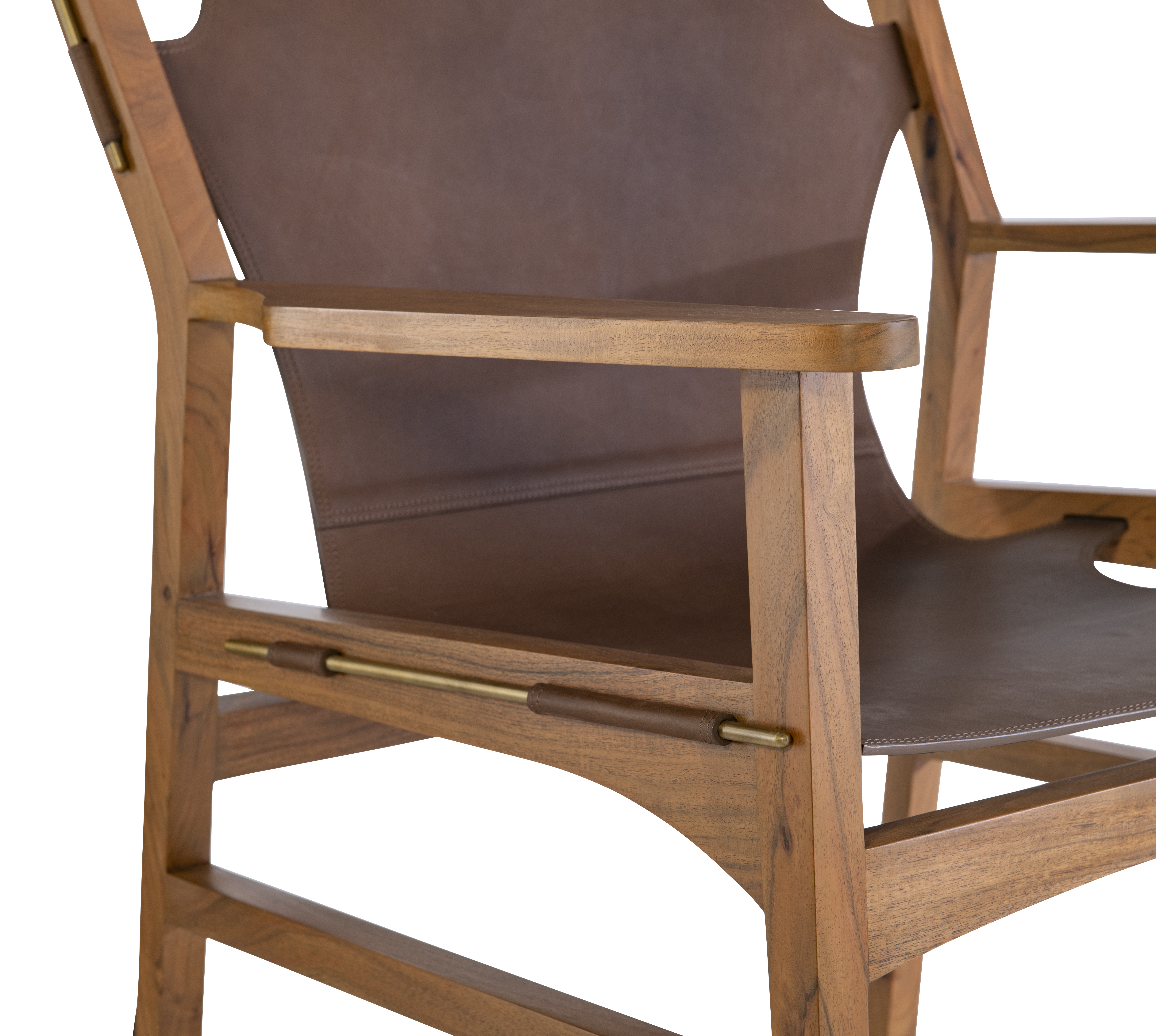 The Astor Accent Chair captures the quiet sophistication of a well-appointed lounge, where clean lines and thoughtful materials create an atmosphere of relaxed refinement. A warm wood frame supports a tailored leather sling seat and back, punctuated with distinctive cutout details that lend the design both character and lightness. Gently angled arms and balanced proportions invite comfortable seating while maintaining a crisp architectural silhouette. Both modern and timeless in spirit, the chair reflects Maitland-Smith’s enduring appreciation for storied materials and quietly confident design.
