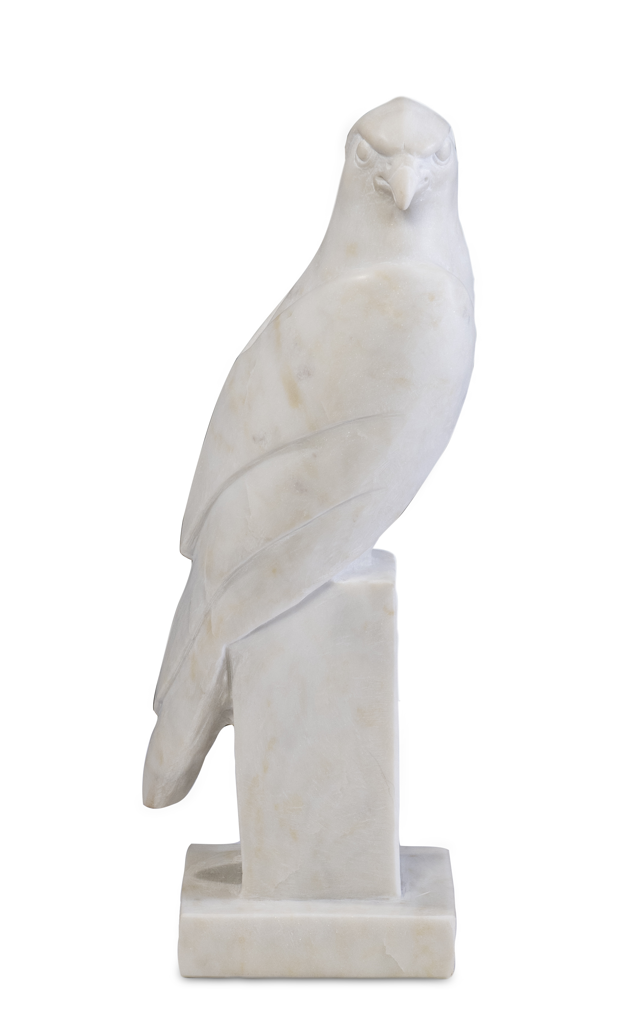 Carved from luminous white marble, this stylized falcon stands as an emblem of vision and mastery. With its sweeping geometric planes and poised silhouette, the piece bridges the grace of nature with the precision of classic design. The falcon’s gaze—focused and resolute—evokes an age when art and architecture celebrated power through restraint. Whether displayed singly or in pairs, it commands attention with a sense of timeless dignity.