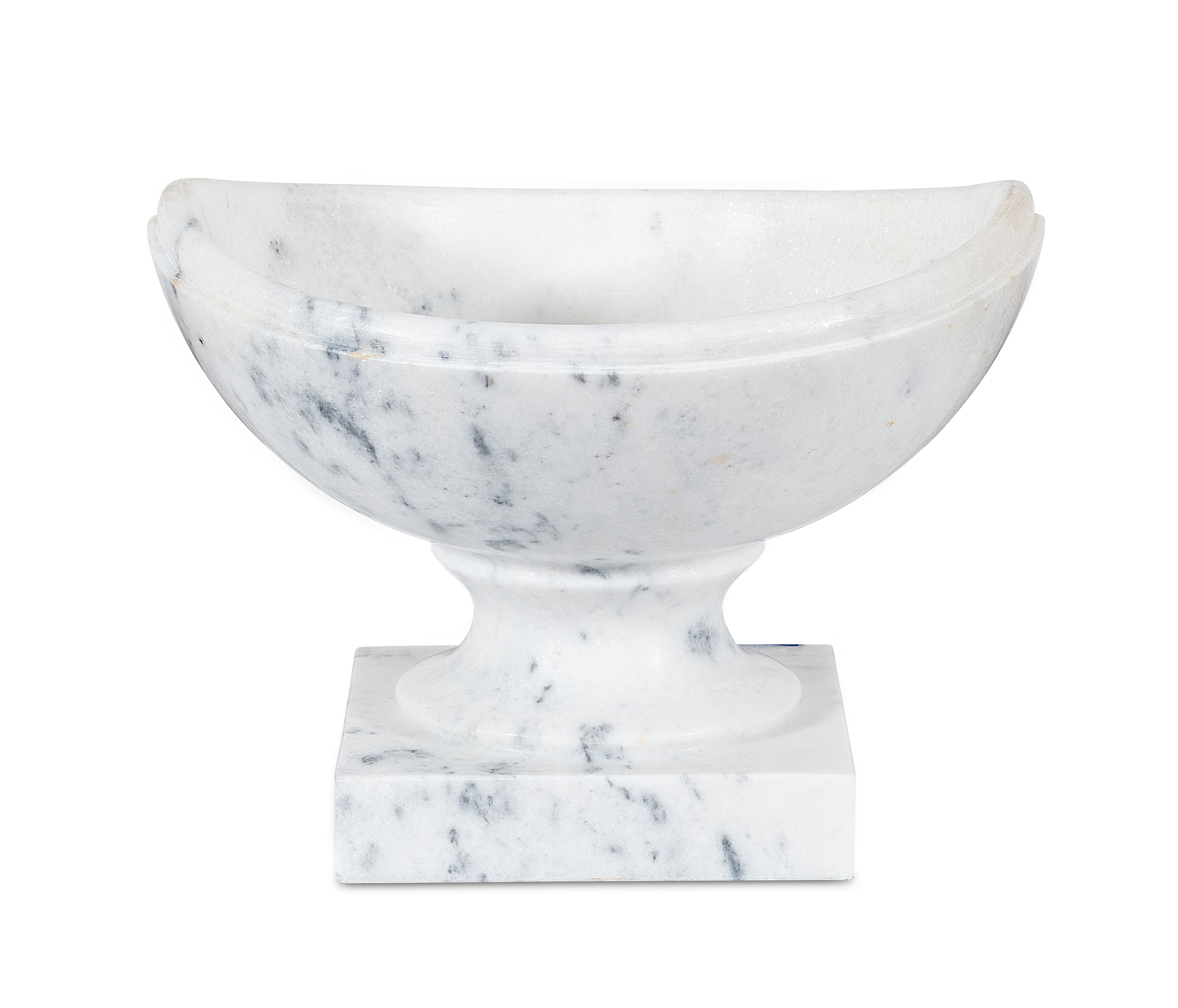 Graceful and architectural, the crescent vase reinterprets an ancient form with sculptural balance. Its sweeping, upturned edges suggest the movement of a rising moon, while the pedestal base anchors the silhouette in timeless symmetry. Carved from luminous white marble, it lends quiet drama to consoles, mantels, or garden niches—a vessel that celebrates both simplicity and sculptural poise.