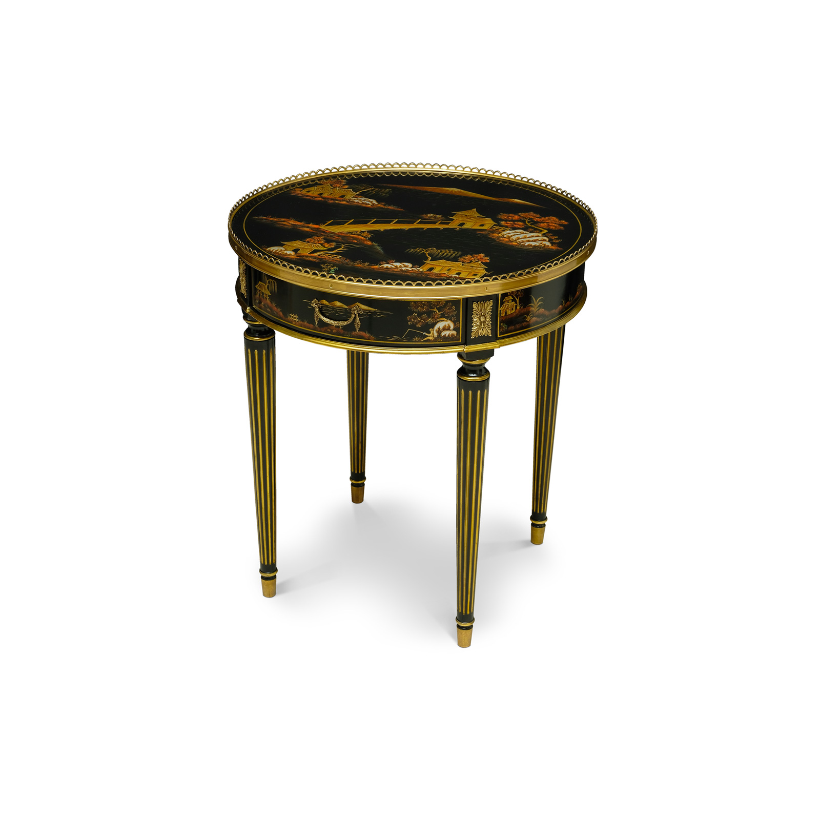 Chinoiserie black lacquered side table with fine Brass accents.